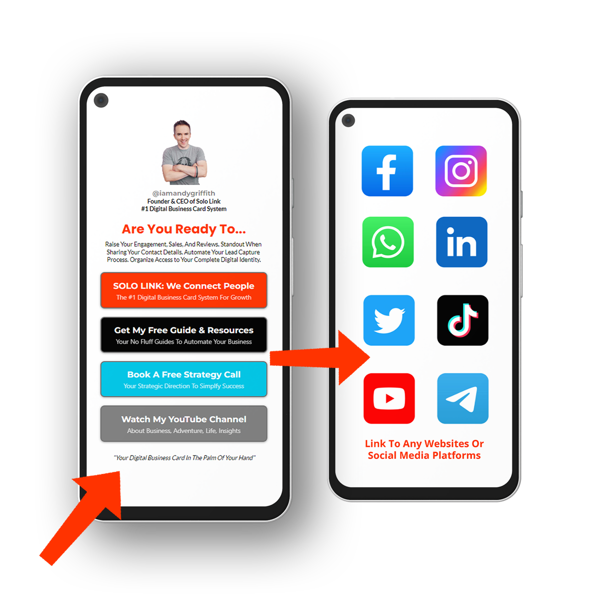 Showcase everything about you with Solo Link. Easily direct contacts to your social media profiles, websites, sales funnels, and more.
